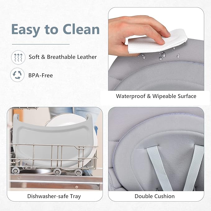 - Detachable & Adjustable Tray: The tray has 3 positions to adjust, you can easily adjust it when baby needs more free space. In addition, the tray is made of kids-friendly PP, which is safe and features great toughness.