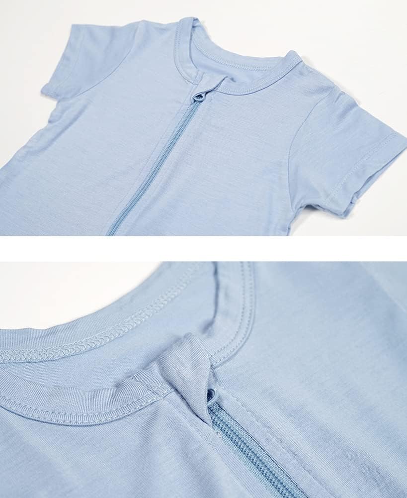 Teach Leanbh Toddler Unisex Baby Bamboo Viscose Pajamas 2 Way Zipper Short Sleeve Footless Romper Jumpsuit Sleep and Play