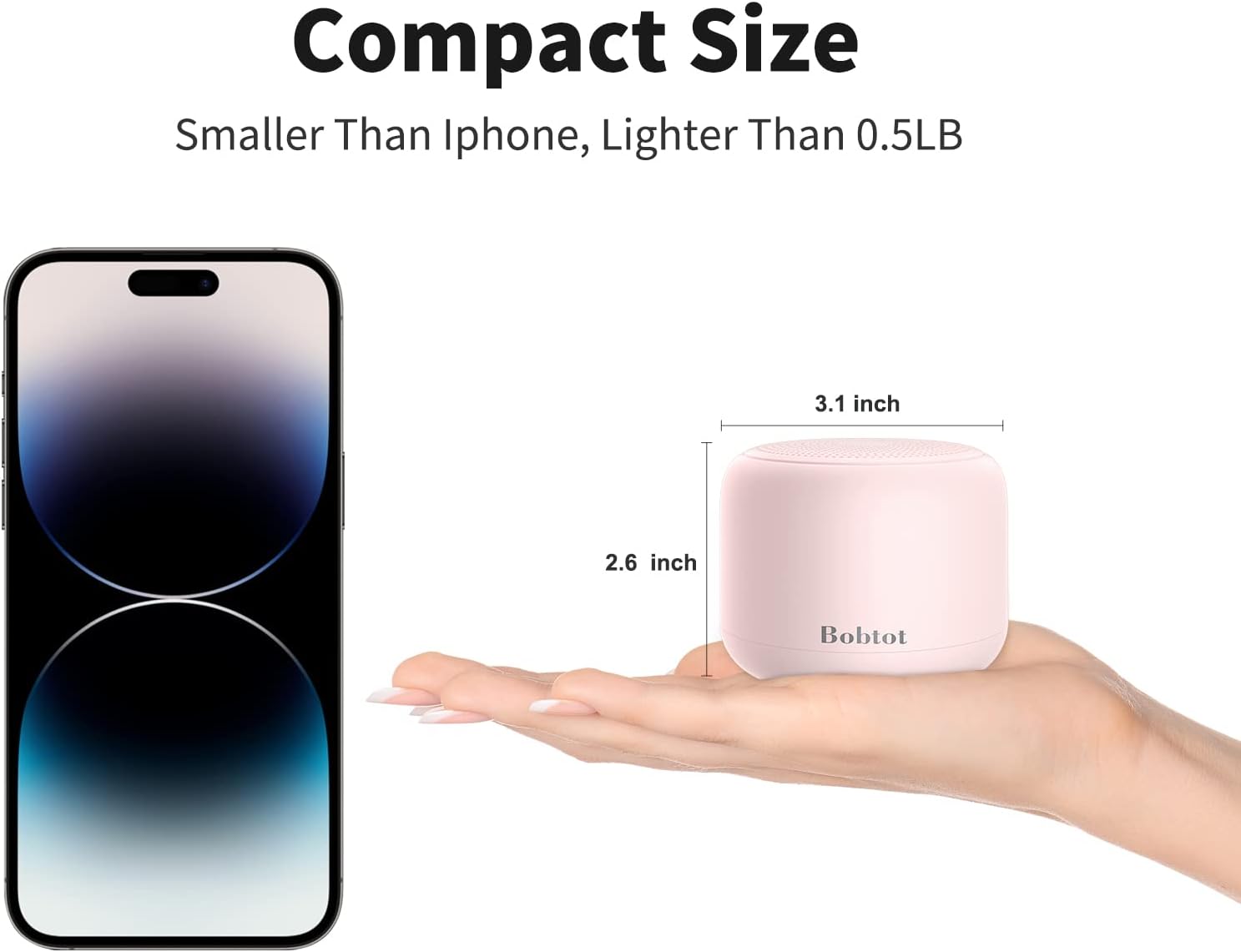 Bobtot Portable Bluetooth Speakers with Strap Easy to Carry, Wireless IPX5 Waterproof Mini Speaker with Loud Stereo Sound, 20 Hours Playtime, Rechargeable Battery, Built-in Microphone, Pink