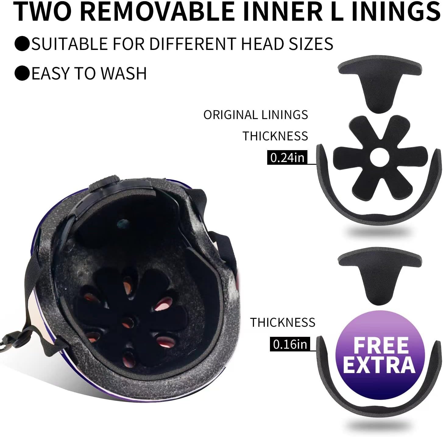 - How to use: Before you use the helmet, please untie the buttons that connect the straps on both sides of the kids helmet. Depending on the size of your head, rotate the red adjustable knob on the back of the helmet and attach the button in the middle of the strap.