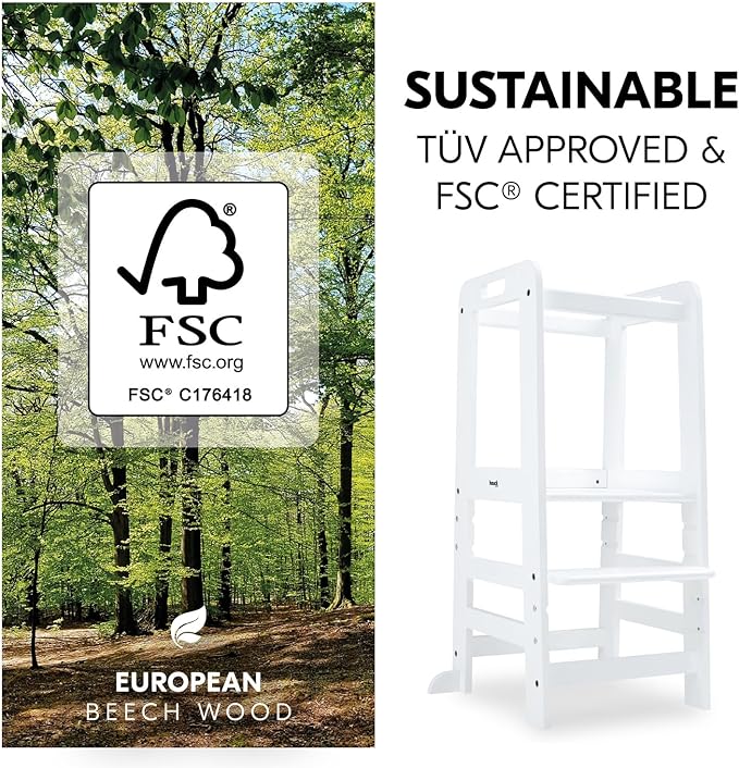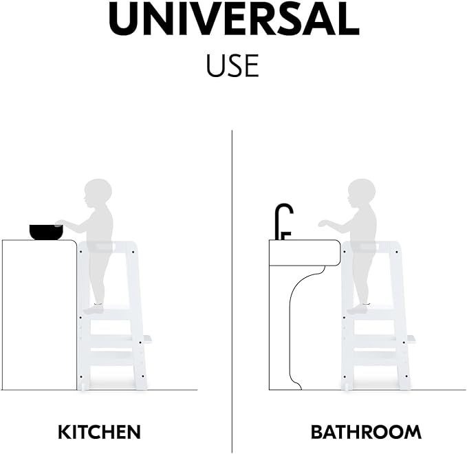 - Toddler Tower Step Stool: Sturdy and adjustable Montessori learning tower and household step stool for kids to explore daily activities at eye level