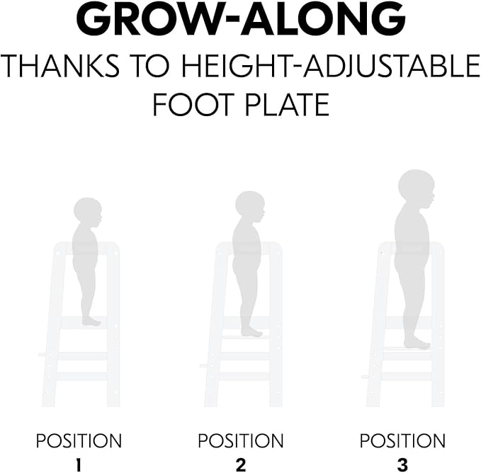 - Adjustable Growing Platform: Foot plate adjusts to 3 heights to support children from 1 year old up to 88 pounds, growing along with your child
