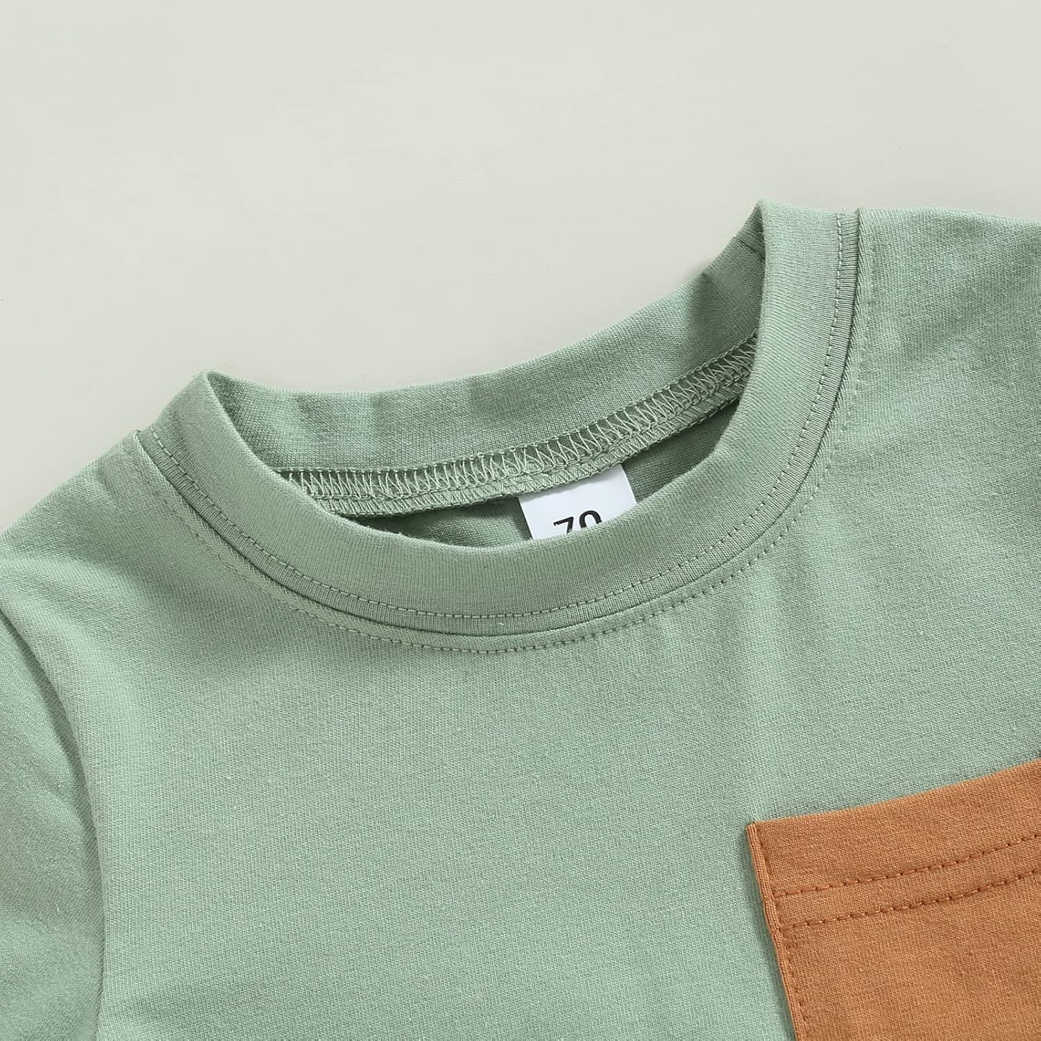 • Relax Crew Neck, One Pocket Front, Striped Pattern, Comfy Short Sleeve T Shirts Tee Tops, Elastic Waist with Drawstring Shorts, Side Pockets, Comfy and Cute Newborn Baby Boys Summer Outfits Clothes