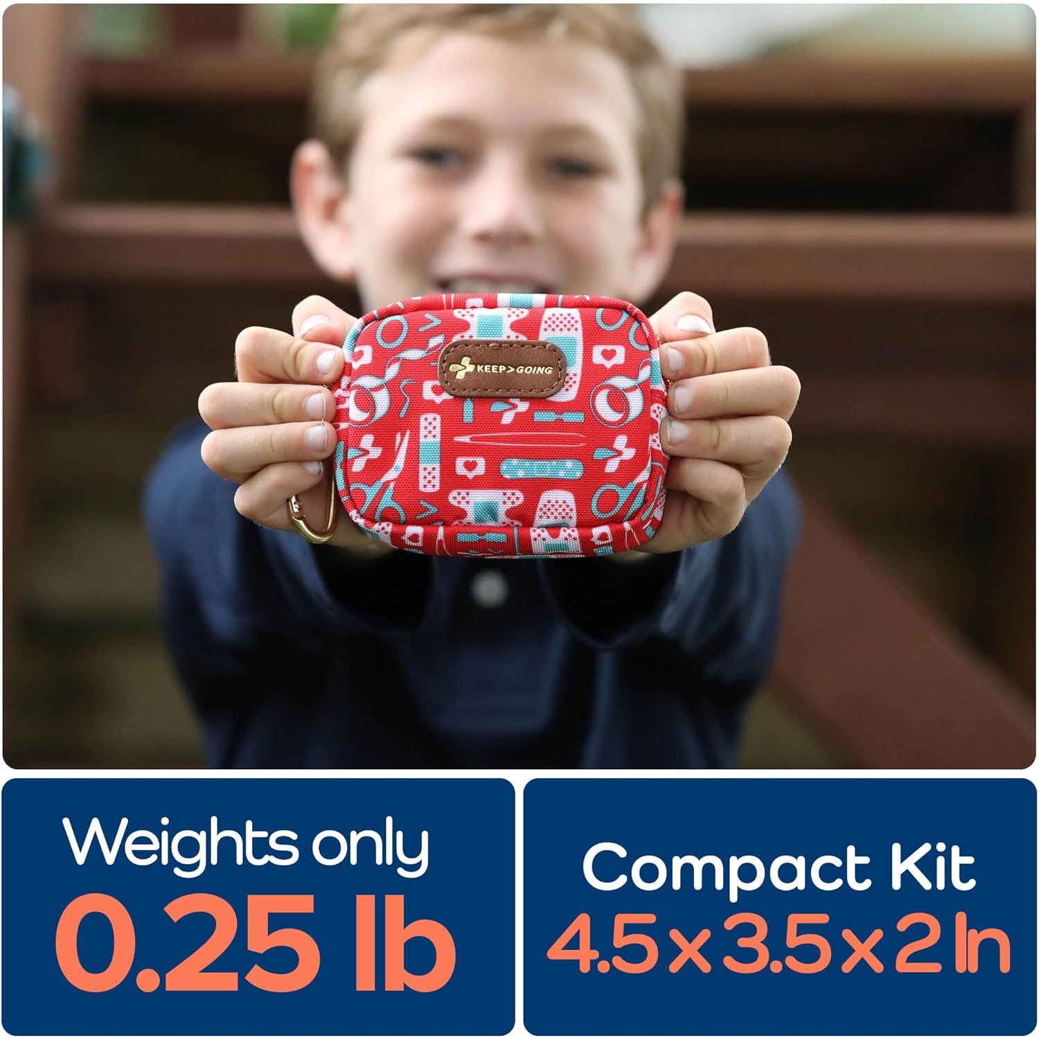KEEP>GOING KeepGoing Small Travel First Aid Kit Kids – 60 Pc. Mini First Aid Kit for Purse, Diaper Bag, & Backpack with Latex-Free Bandages – 4 Oz., & 4.5 x 3.5 x 2 in, TSA-Approved