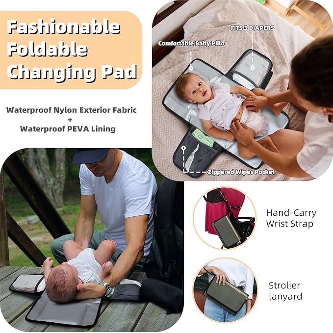 - FOLDABLE CHANGING PAD & ACCESSORIES INCLUDED: Comes with a foldable, waterproof changing pad (23”x 13”) for quick diaper changes, along with a detachable pacifier case and stroller straps to keep your hands free during outings.