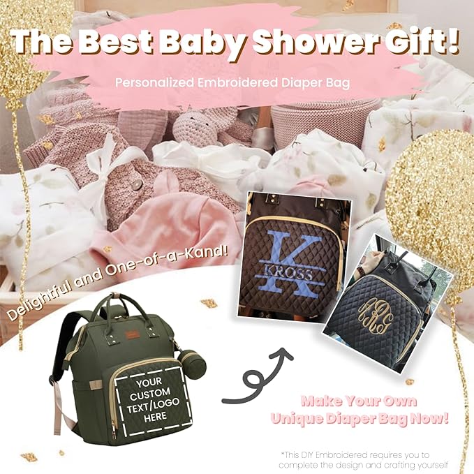 Diaper Bag Backpack with Changing Pad, Pacifier Case, Baby Bag for Boy Girl Toddler - Large, Stylish, Waterproof Travel Quilted Diaper Bag for Mom - Baby Shower - Army Green