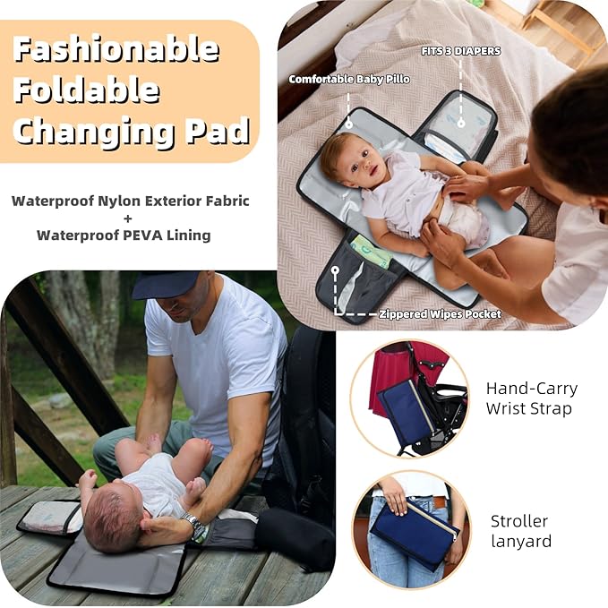 - FOLDABLE CHANGING PAD & ACCESSORIES INCLUDED: Comes with a foldable, waterproof changing pad (23”x 13”) for quick diaper changes, along with a detachable pacifier case and stroller straps to keep your hands free during outings.