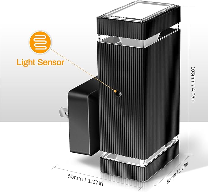 - PLUG IN NIGHT LIGHT DESIGN -- This is the small thing that provides wider brightness in the darkness and gives enough light to guide your way when going to the toilet or getting water in the kitchen at night. Design with safety and quality in mind, using the most advanced technology that works year-round of illumination from dusk to dawn.
