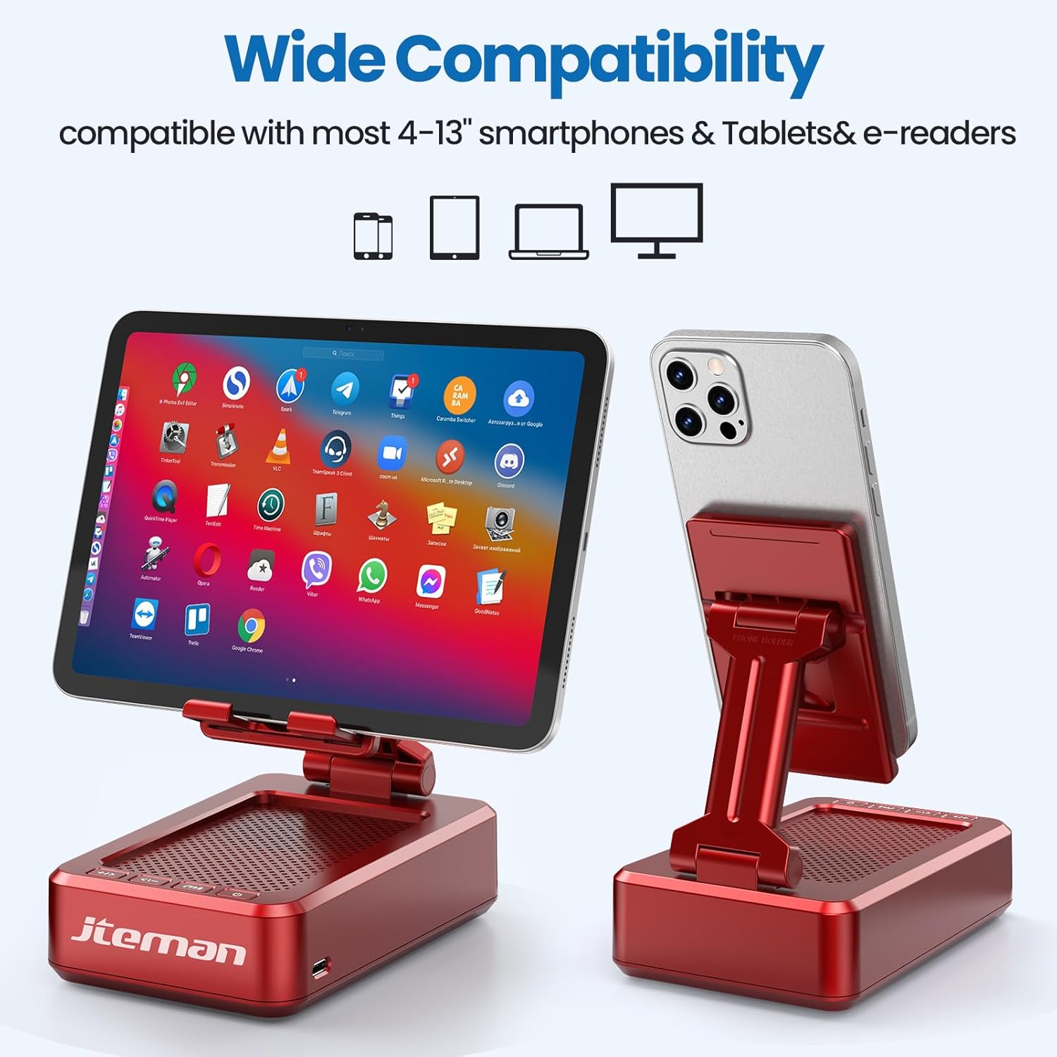 JTEMAN Portable Phone Stand with Speaker Bluetooth Wireless,Gifts for Men Women,Birthday for Women,Kitchen Gadgets for Men,Phone Holder for Desk - Red