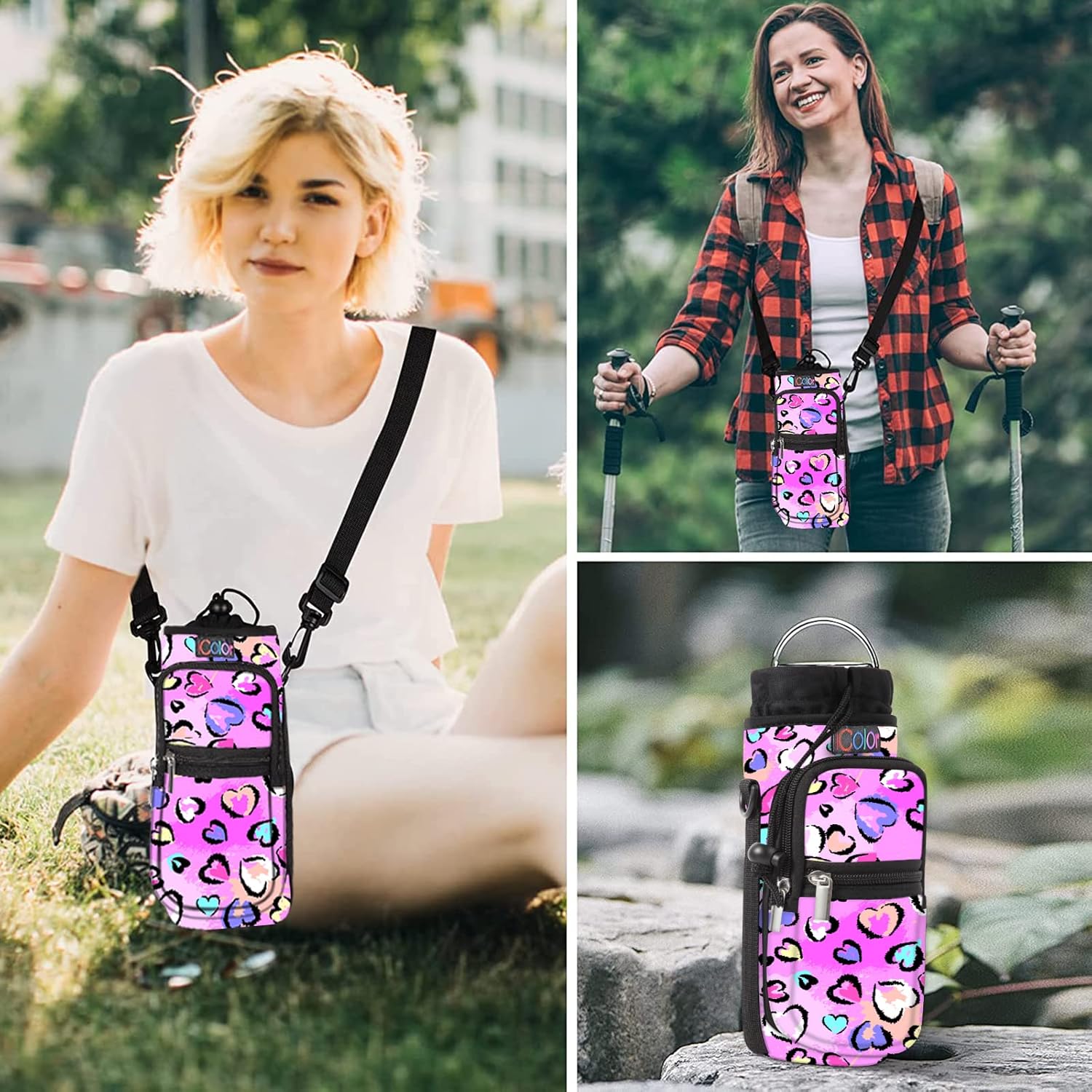 icolor Water Bottle Carrier Bag with Strap 25/32/40 oz Crossbody Bottle Holder with Phone Pocket Sling Sleeve Insulated Neoprene Water Bottle Pouch for Walking Travelling