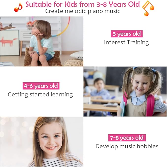 - 【Ideal Gift for Your Little One】This kids piano and stool set will be a perfect gift for kids of 3-8 years old. It will be effective in inspiring musical potential, promoting sound discrimination, improving hand-eye coordination and reducing screen time. Moreover, the piano has gained ASTM and CPSIA certification.