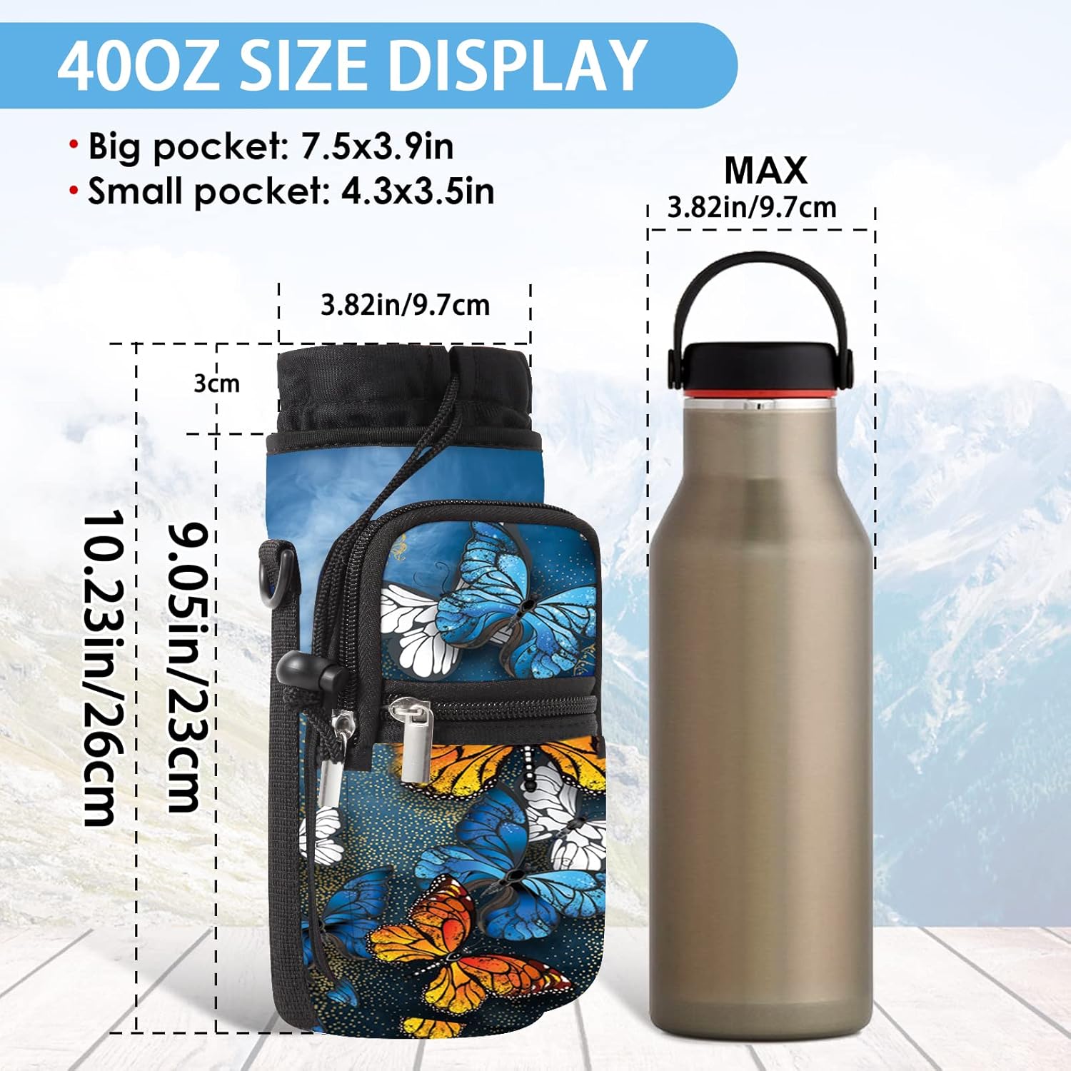 25/32/40/64oz Water Bottle Bag Holder Carrier-Insulated Crossbody Sling Case Sleeve with Strap & Pockets for Men Women Gym Cycling Travel Walking Hiking Camping