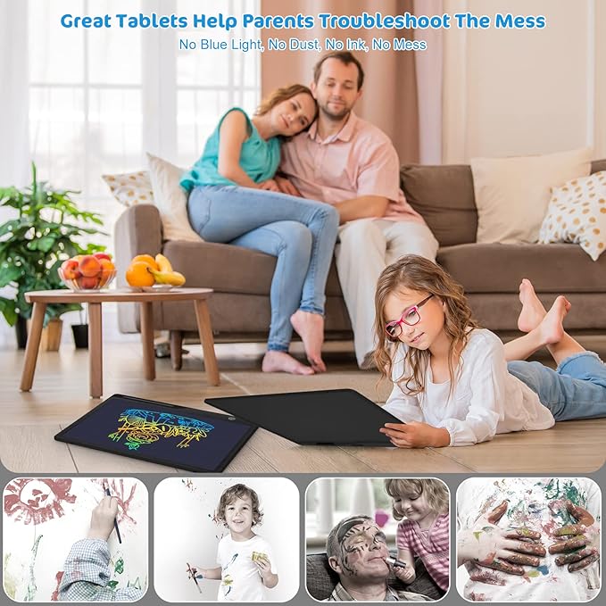 - EYE-PROTECTING LCD SCREEN- Back-lit LCD colorful screen, No radiation, no glare, safe and comfortable even use for a long time. Adopts the newest LCD screen and sensing tech. The colors on the screen are 60% brighter than other tablets on the market. Makes drawing more smoothly and lines more vivid. Brings a more comfortable writing experience.
