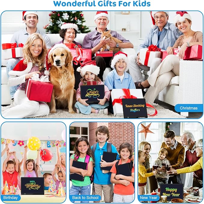 - IDEAL GIFT FOR KIDS: Serve as toddler drawing board, drawing tablets, writing board, light drawing pad for kids. scribble board, magic graphic tablet, would be a perfect gift for kids on any occasion, definitely bringing them boundless excitement, great for birthdays, Christmas, Easter, Thanksgiving, Valentine's Day, back-to-school supplies, surprise as Easter basket stuffers, Christmas stocking stuffers must-have! A suitable gift toy for 3 4 5 6 7-year-old boys and girls.