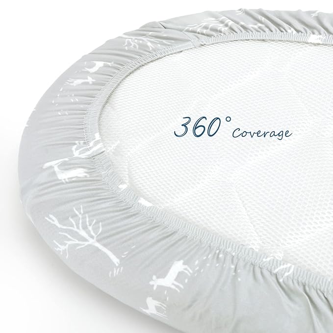- Universal Fit – Measuring 32" x 16" x 5". Our bassinet sheets fit almost all standard oval, round, rectangle, hourglass shaped bassinet mattress. Each bassinet mattress pad cover comes with an elastic band encased at the bottom for safety.