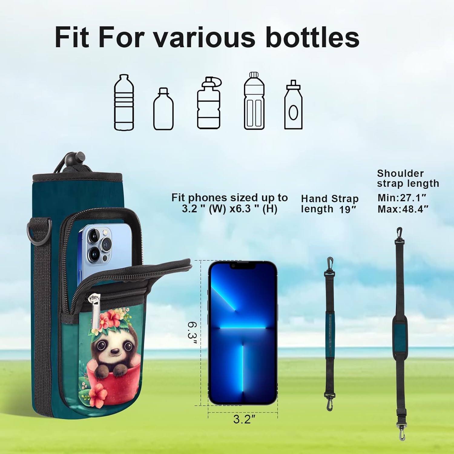 25/32/40/64oz Water Bottle Bag Holder Carrier-Insulated Crossbody Sling Case Sleeve with Strap & Pockets for Men Women Gym Cycling Travel Walking Hiking Camping