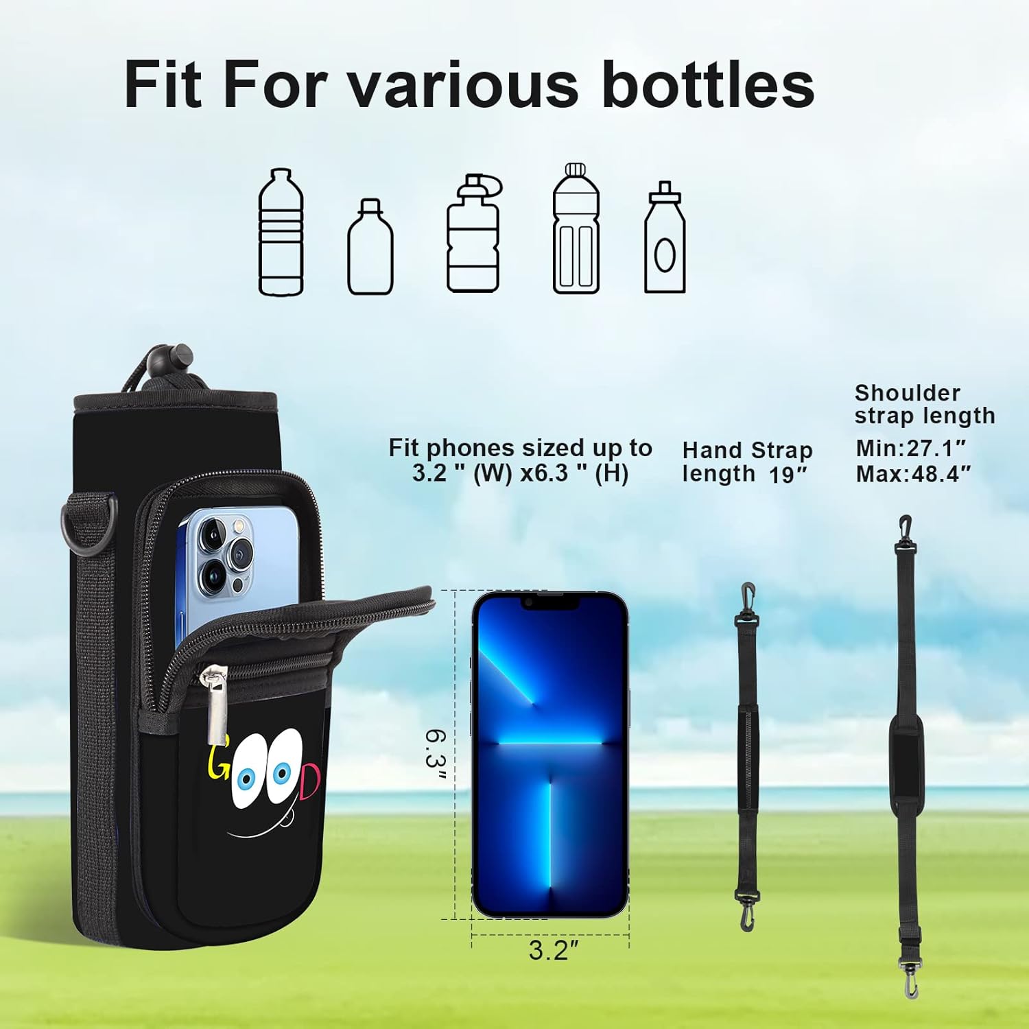 25/32/40/64oz Water Bottle Bag Holder Carrier-Insulated Crossbody Sling Case Sleeve with Strap & Pockets for Men Women Gym Cycling Travel Walking Hiking Camping