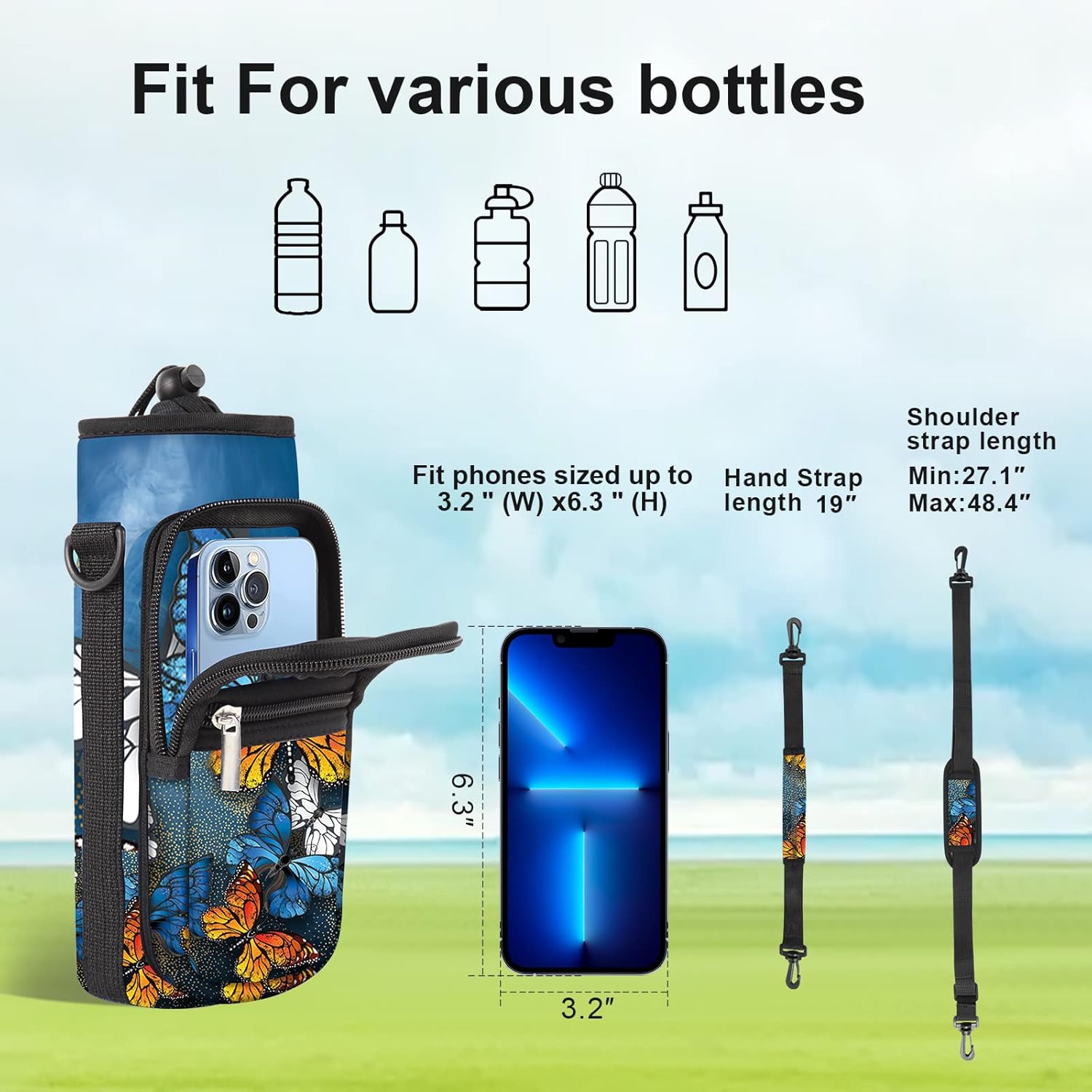 25/32/40/64oz Water Bottle Bag Holder Carrier-Insulated Crossbody Sling Case Sleeve with Strap & Pockets for Men Women Gym Cycling Travel Walking Hiking Camping