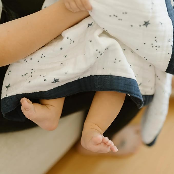 Little Unicorn Newborn Receiving Quilt | Ultra- Soft, Multi-Layered Muslin Fabric | Gift for Newborns & on-The-go (Shooting Stars)