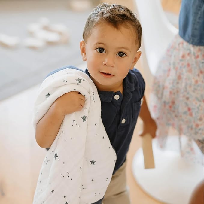 - CUDDLE TIME ESSENTIAL: Our quilt has 4 layers of 100% cotton muslin to wrap your child in softness, warmth, and a feeling of security. The luxurious softness is a dream for morning cuddles, naptimes, middle-of-the-night feedings, and more.