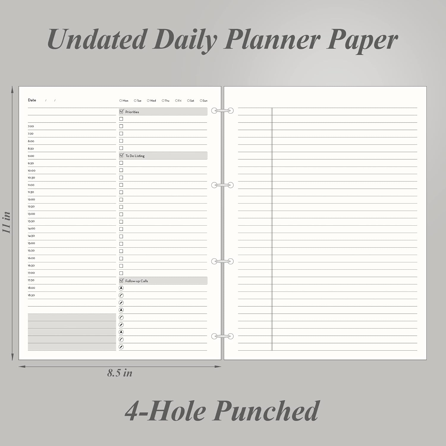 EMSHOI Daily Planner Refill 8.5" X 11", 80 Sheets, 160 Pages A4 4-Ring Binder Planner Inserts, Thick Cream Color Refill Paper, 100 GSM Loose Leaf, A4 Paper Refills with Gift Box