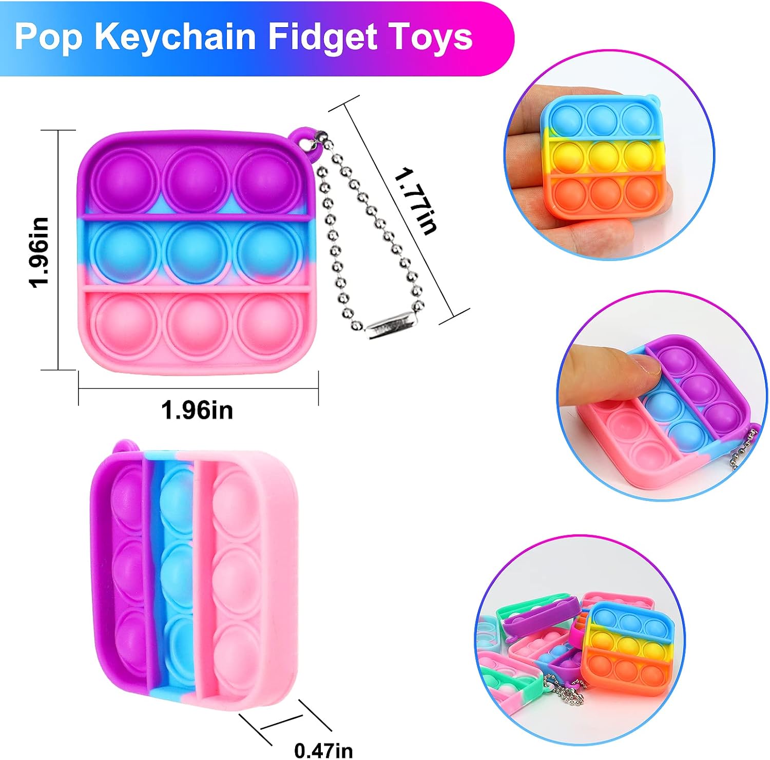 - 【Mini Pop Keychain It Fidget Toys】Sensory fidget toys size 1.96*1.96 in. Small size,great for hanging on keys or tying to bags,for those lack of attention with hyperactivity disorder,autistic children's toy.Also great for kids party favors, party favors for kids goodie bags, sensory toys, kids party favors goodie bags stuffers,birthday party favors for kids 8-12, fidgets for classroom, fidget party favors,toddler party favor,teen party favors for girls, christmas party favors for adults.