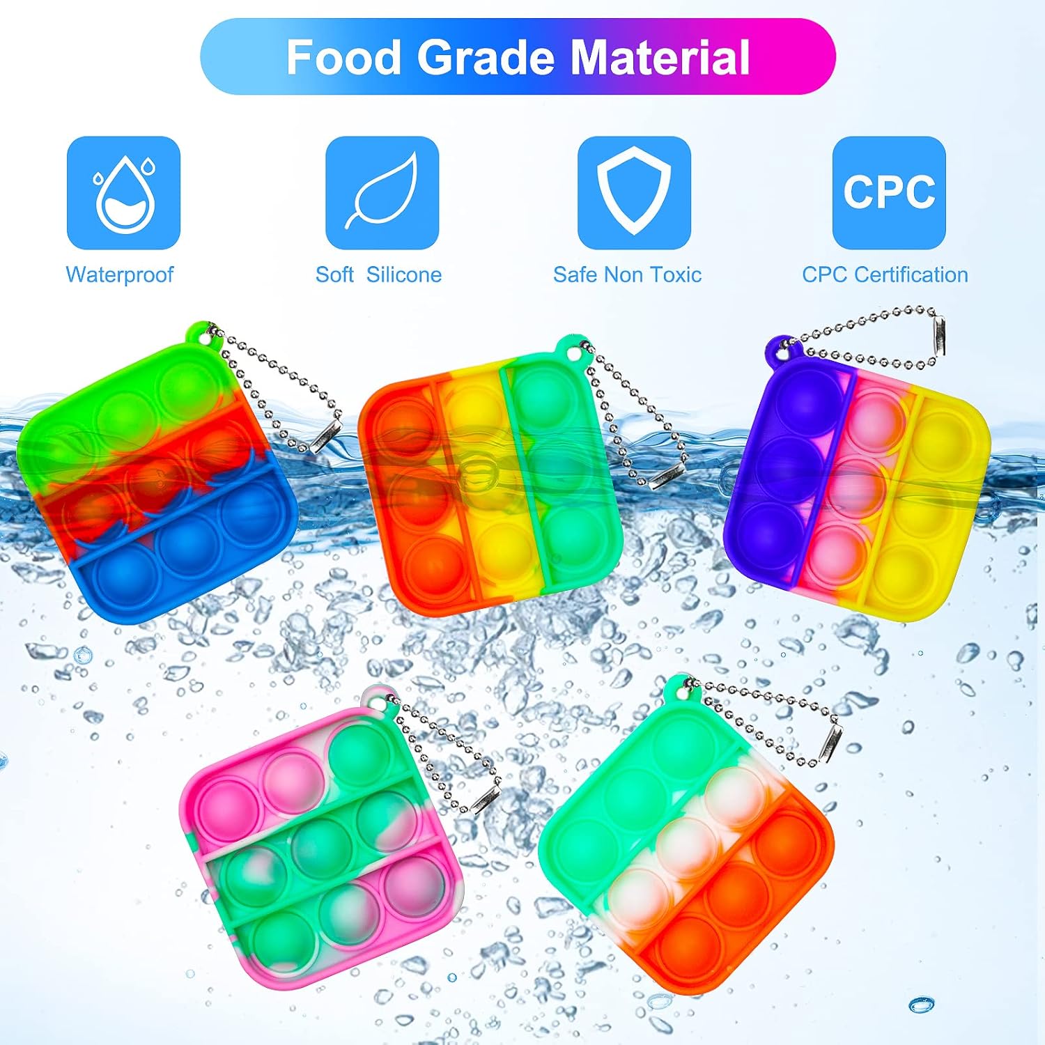 - 【Party Favors for Kids】 Mini Pop keychain fidget toys kids party favors for kids 8-12 are made of food grade silicone material toddler party favors for kids 4-8 to play, CPC certified and child safety test. It is most popular stress relief rainbow party favors for kids 3-5 boys, teens and girls christmas party favors for kids, party favor toys fidget party favors for teens boy christmas stocking stuffers bubble adult party favors for kids party favor bags, pop fidget party favors.