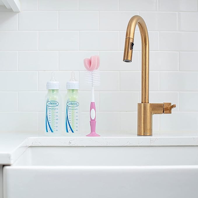 - Contains (1) Dr. Brown’s Insta-Feed Bottle Warmer and Sterilizer (4) Dr. Brown’s Natural Flow Anti-Colic Options+ Narrow Baby Bottles 4 oz/120 mL, with Level 1 Slow Flow Nipple, 0m+ (3) Dr. Brown's Reusable Sponge Baby Bottle Cleaning Brush Set with Suction Cup Stand, Scrubber and Nipple Cleaner, Pink
