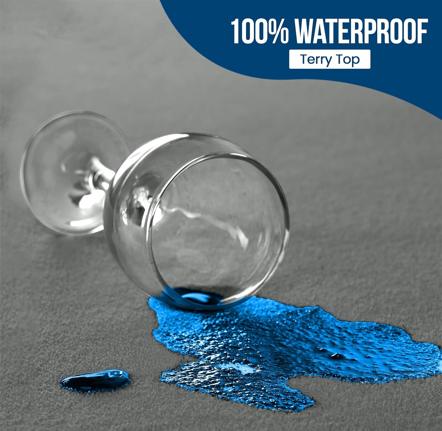 - Waterproof Terry Top - The mattress protector protects your mattress from unwelcome spills and keeps your mattress clean and safe. High-quality TPU backing secures your mattress from the top and resists any leakage into the mattress.