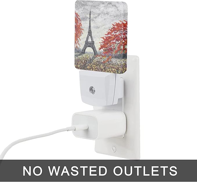 Eiffel Tower Night Light,Paris Spring Red Plug in Night Lights 0.5W Sleep Friendly for Boys Girls Led Night Light Dusk to Dawn Sensor Nightlight for Stairway/Hallway/Kitchen