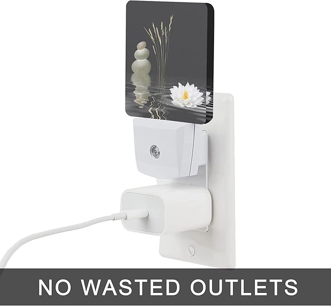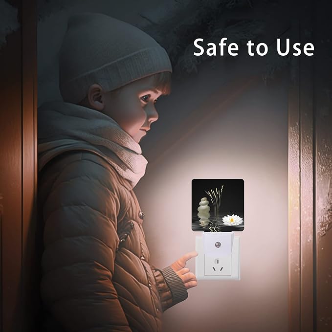 Zen Spa Night Light,Grey Stones Lotus Night Lights Plug into Wall Dusk to Dawn Sensor Led Lamp for Women Men,Led Lights for Stairway/Hallway/Bedroom,0.5W