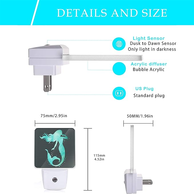 - 【Auto Sensor】 - This Night Light Has A Built-In Dusk-To-Dawn Sensor, So It Can Automatically Turn On And Off Based On The Ambient Light In Your Room. You Never Have To Worry About Turning It On Or Off Manually.