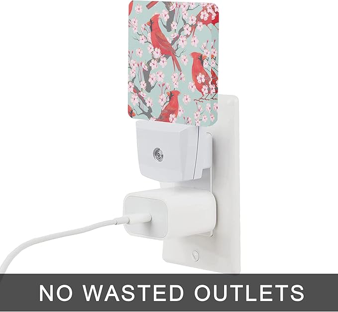 Red Cardinal Night Light,Blooming Cherry Night Lights Plug into Wall for Boys Girls, Led Lights Indoor Home Decor 0.5W Nightlight Sleep Friendly