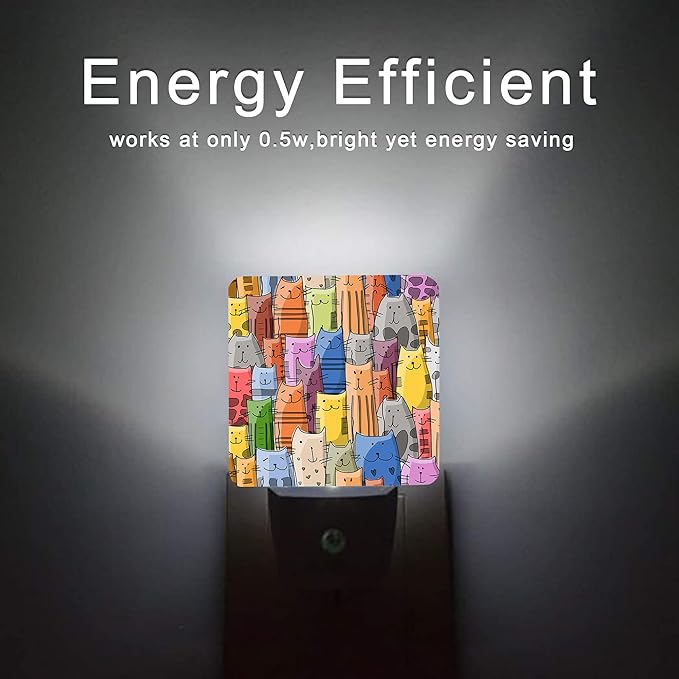 Funny Cat Night Light,Funny Cats Family Plug-in Night Lights with Dusk-to-Dawn Sensor for Stairway/Hallway/Bedroom Sleep Friendly lamp for Women/Girls/Boys Gift,0.5W