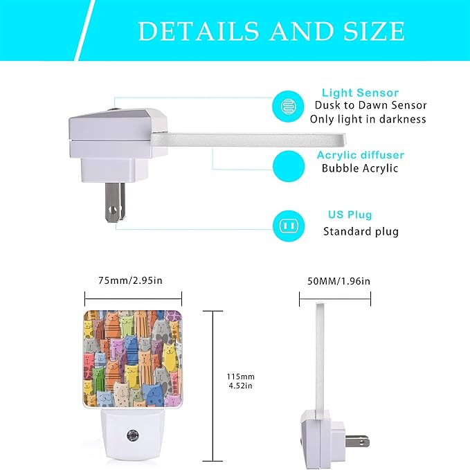 - 【Soft Light】 - This Night Light Emits A Soft, Warm Glow That Provides Enough Light Without Interrupting Sleep. It Is Perfect For Nurseries, Children'S Rooms And Other Spaces That Need A Little Extra Light At Night, This Plug-In Night Light Is Suitable For Boys And Girls Rooms, Bathrooms, Study, Bedrooms, Kitchens And Living Rooms, Bringing A Fresh Look To Your Home Decor.