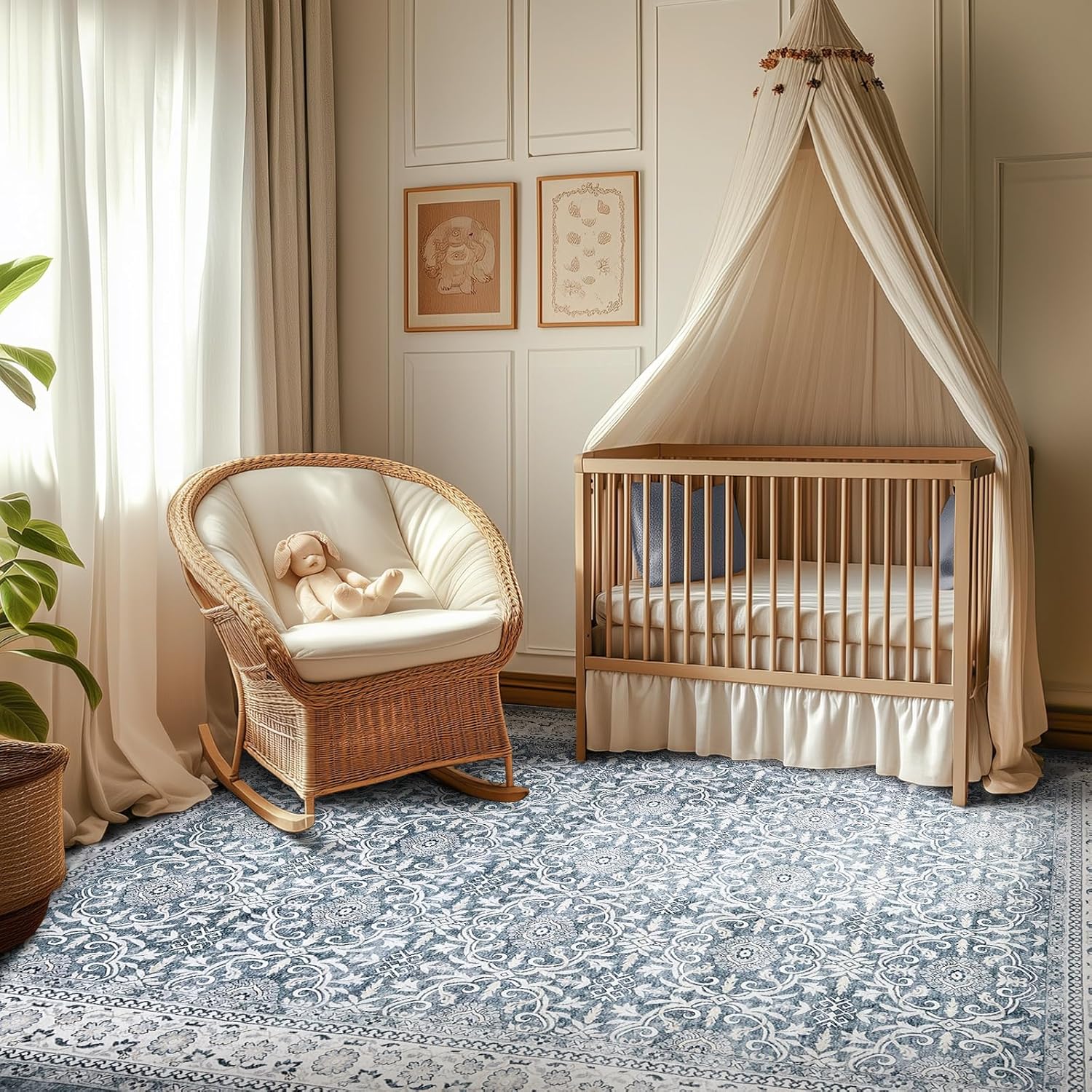 jinchan Floral 5x7 Area Rugs for Bedroom - Machine Washable Vintage Distressed Boho Design Throw Rug Stain Resistant Carpet Low-Pile Thin Non-Slip for Nursery Living Room Dining Room (5‘x7',Grey)