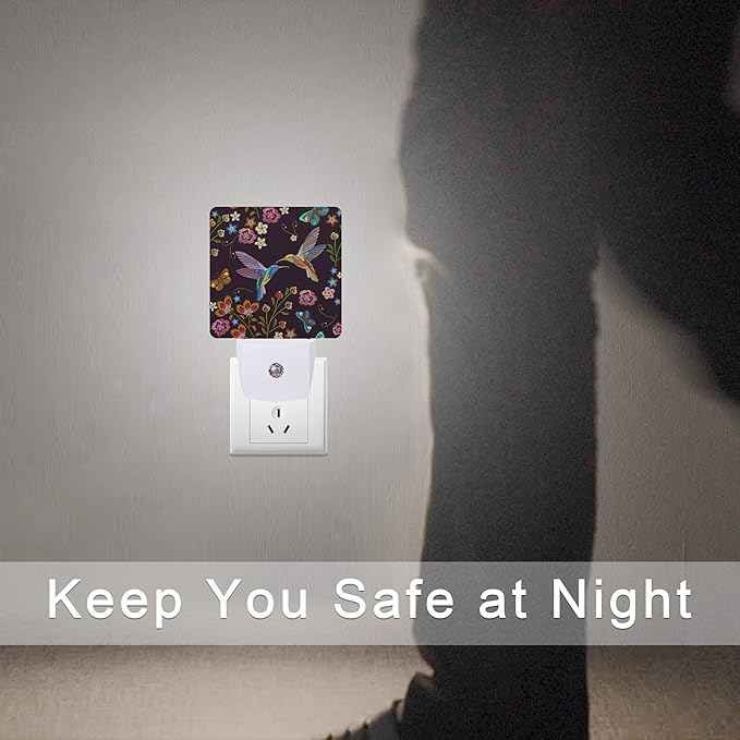 Vintage Hummingbird Butterfly Flowers Night Light Plug-in LED Nightlights Auto Sensor Night Lamp Dusk-to-Dawn Lamp Home Decor for Nursery Children Girls Boys