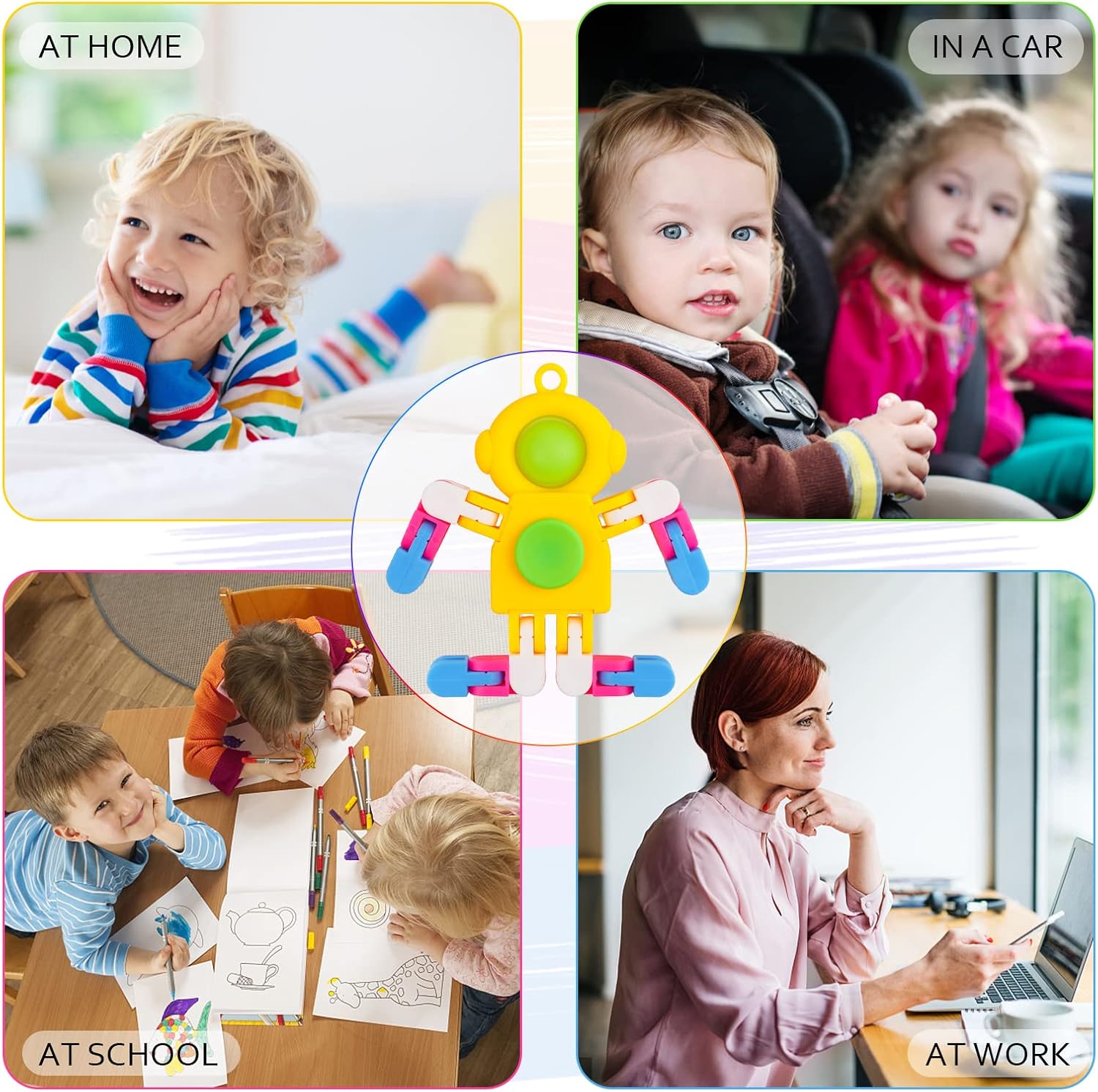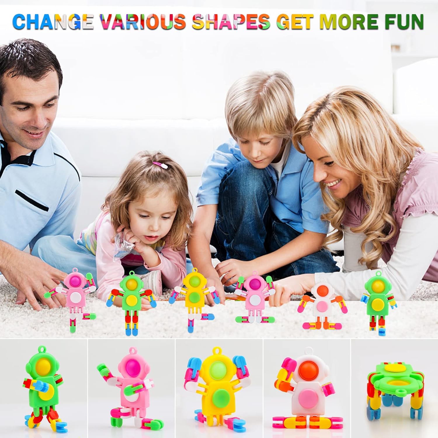 - 【3 IN 1 FIDGET SPINNING TOYS】You will get 24 pieces colorful 3 in 1 sensory fidget toys in one package. This sensory fidget toy with deformable design has wacky track leg, spinning body and simple dimple on head, can be changed into various shapes according to your imagination and hold the center body to rotate, and press the dimple on head to make a satisfied popping sound. Also you can hang them as key chain.