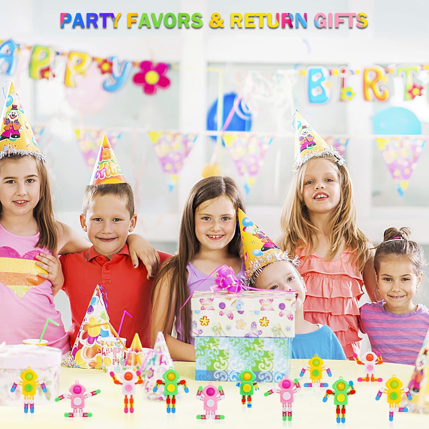 Easter Basket Stuffer Gift for Toddlers Kids Robot Sensory Travel Toys 4Pcs for Boy Year Old Ages 3 4 5 6 7 8 9, Airplane Travel Activities Suction Autistic Valentine Pop Tube Autism Fidget Toys