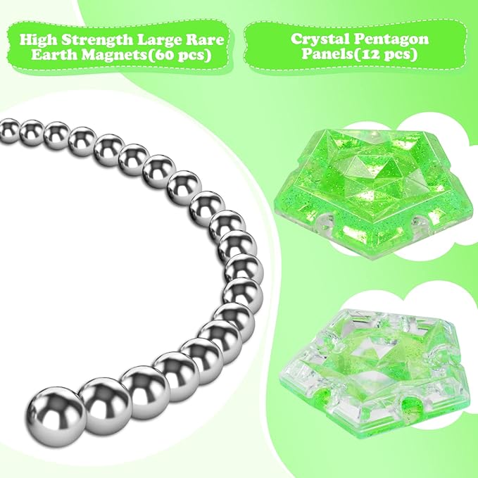 - [Holographic Glitter Panel]: Each pentagonal panel has stunning crystals and iridescent glitter, which emits dazzling iridescent when exposed to direct sunlight or lamplight. Each surface is cut into convex and concave shapes to better trigger nerve endings in fingertips and boost IQ.