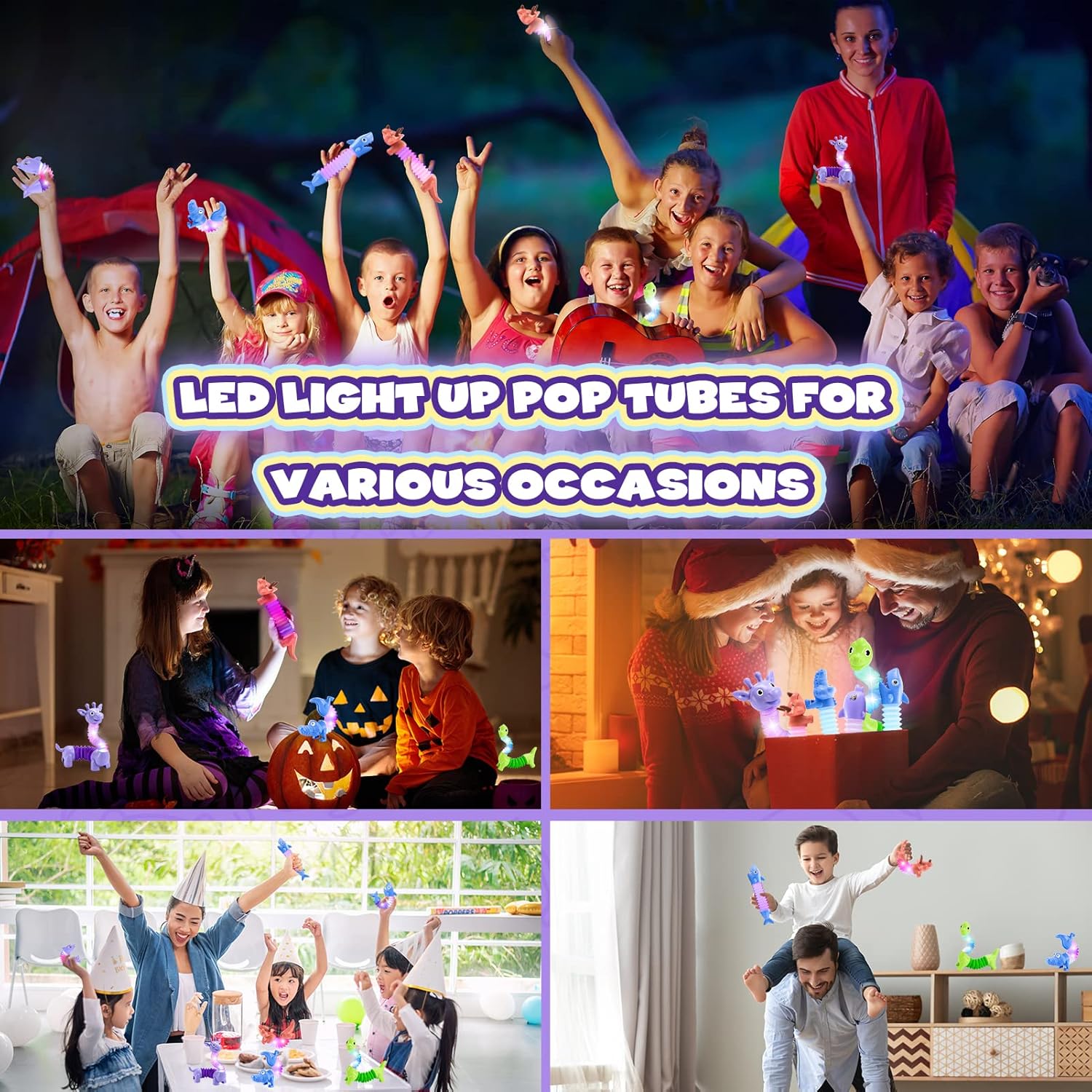 Animals Fidget Toys for Toddlers: 6 Pack LED Animal Pop Tubes for Kids 2 3 4 5 6 Year Old Girls Boys Halloween Birthday Gifts New Autism Sensory Toy for Toddler Age 3-5 Tube Set Light Up Party Favors