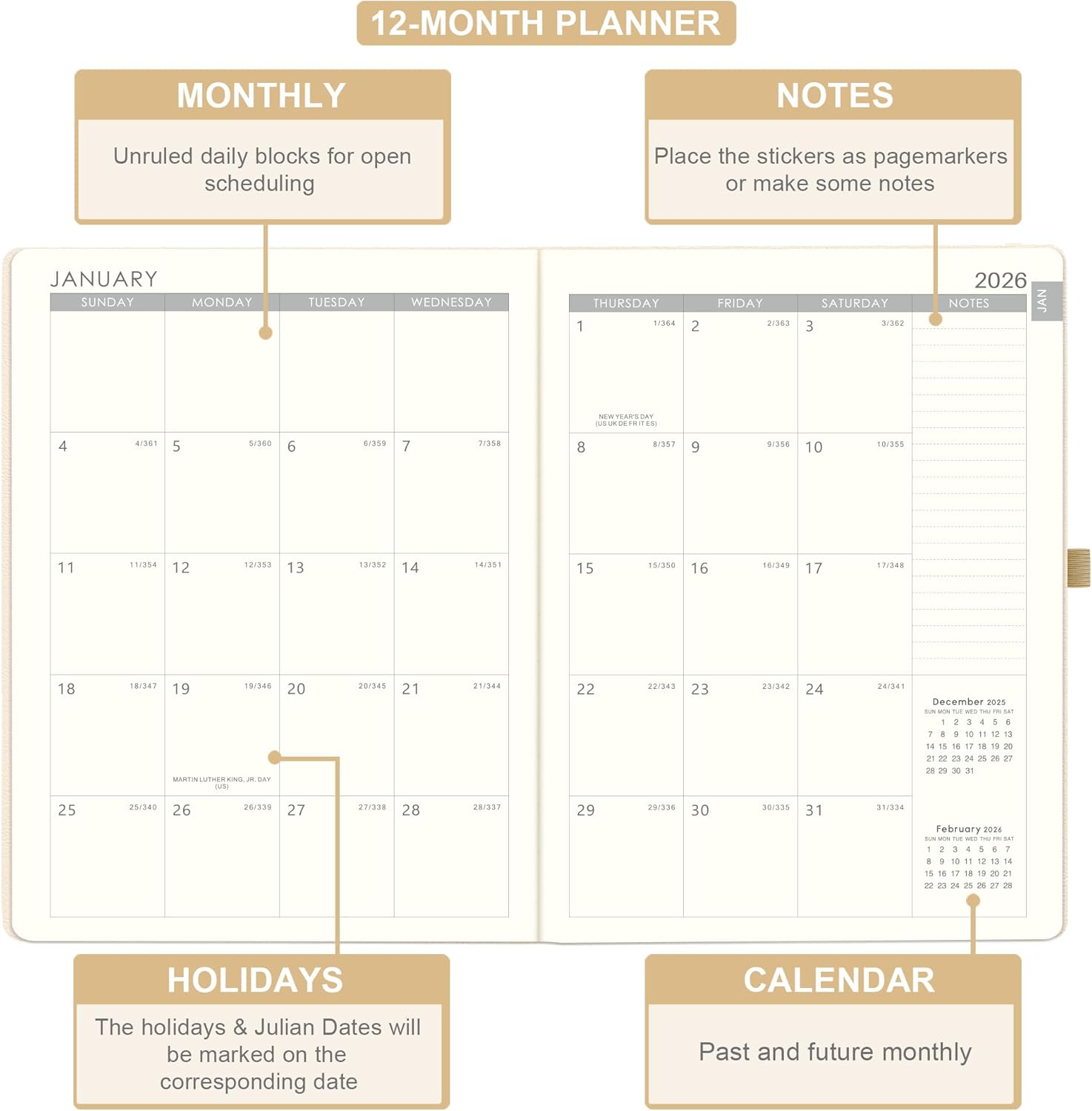 - ✨ Standard planner January 2026 - December 2026, featuring 12 months of weekly/monthly pages/holidays marked. With Weekly/Monthly sections, help you manage your life efficiently|achieve your goal perfectly.