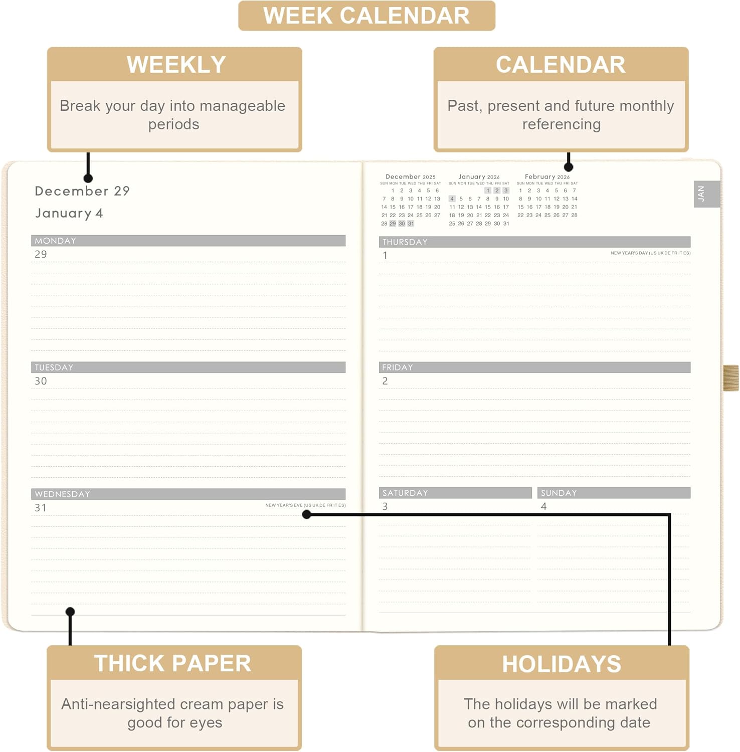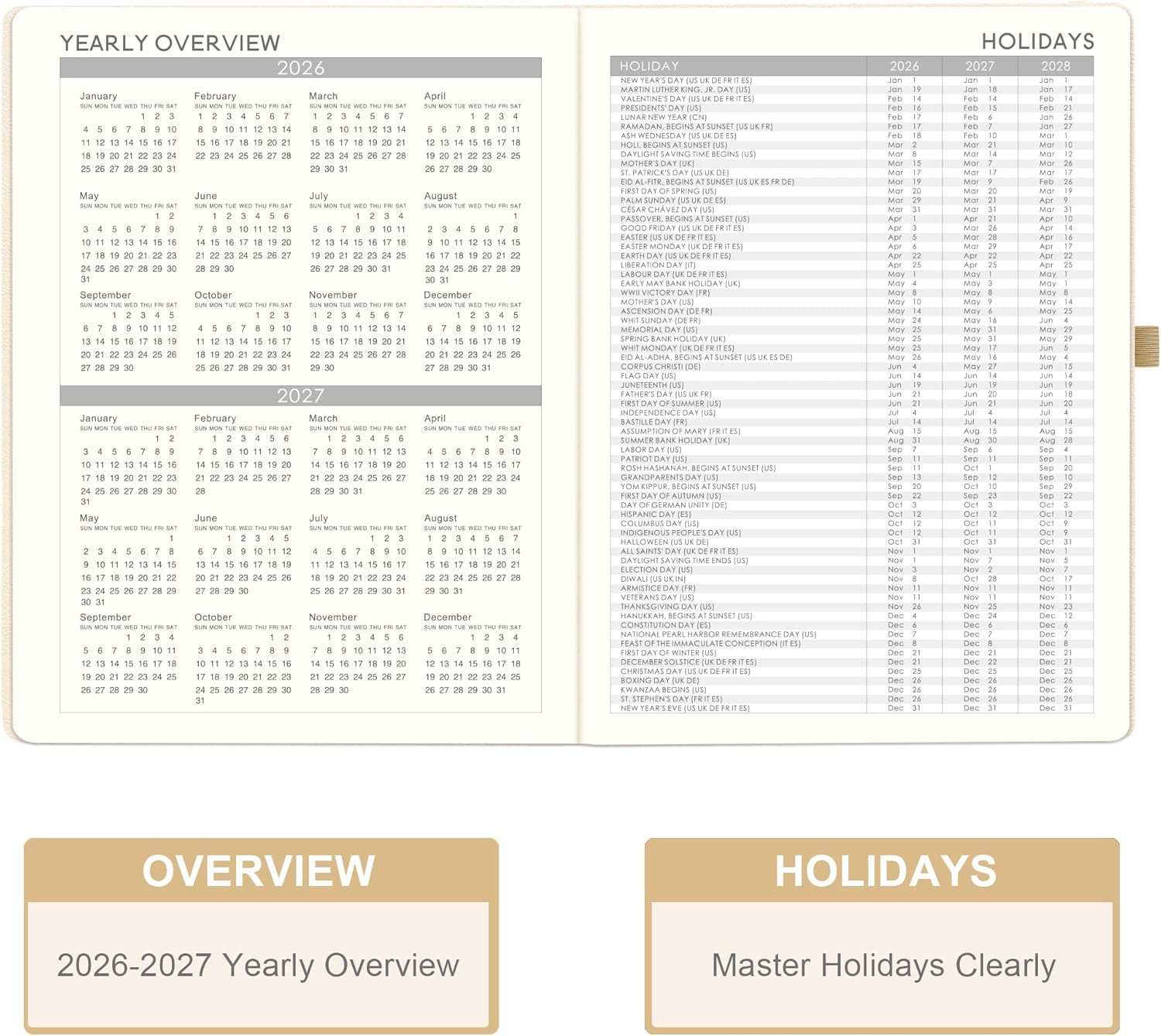 - ✨ Durable soft leather cover, excellent texture. 2026-2028 yearly holidays lets you master the holidays clearly. The 2025-2026 planner offers unruled monthly pages/ruled weekly layouts for detailed planning.