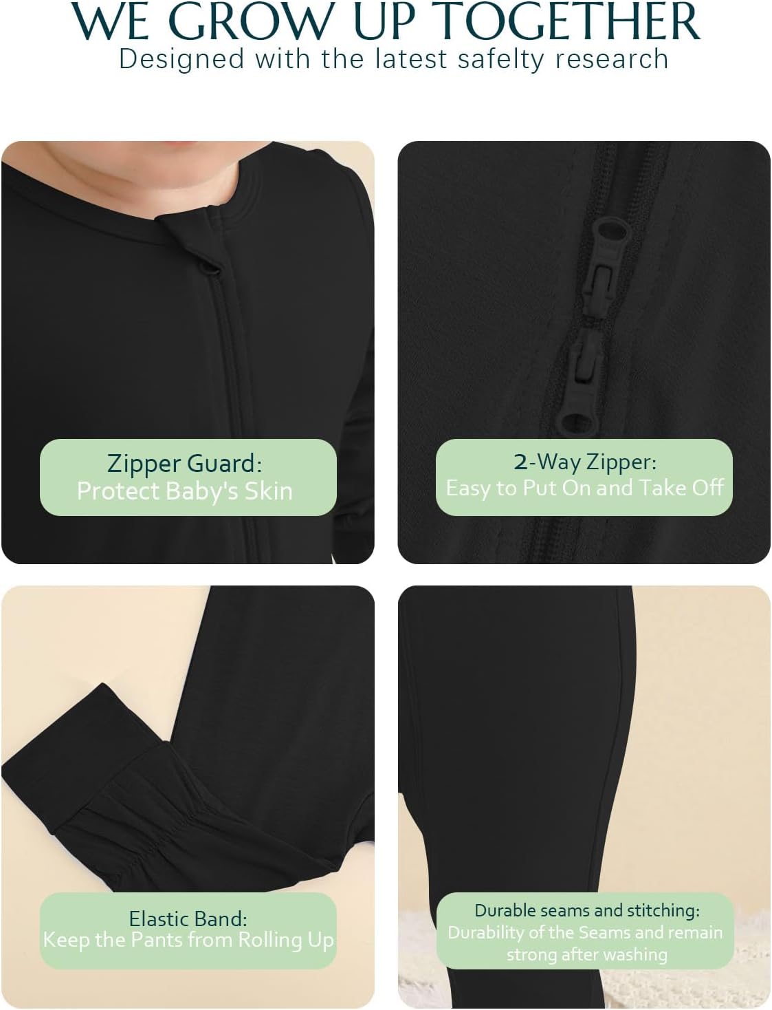 Jimonda Baby Romper Boys Girls Bamboo Pajamas 2-Way Zipper Footless Unisex Long Sleeve Sleepers Sleep and Play 0-24 Months