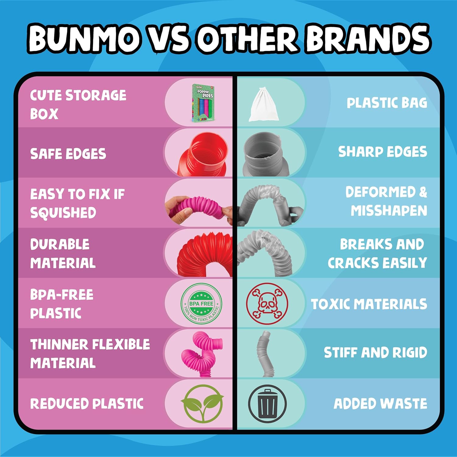 - Premium Quality - BunMo is the leading brand in sensory toys, and our Pastel Pop Tubes are made with high-quality, durable, BPA-free plastic that won't crack. If squished, they can be easily fixed using a pen, knitting needle, or chopstick.