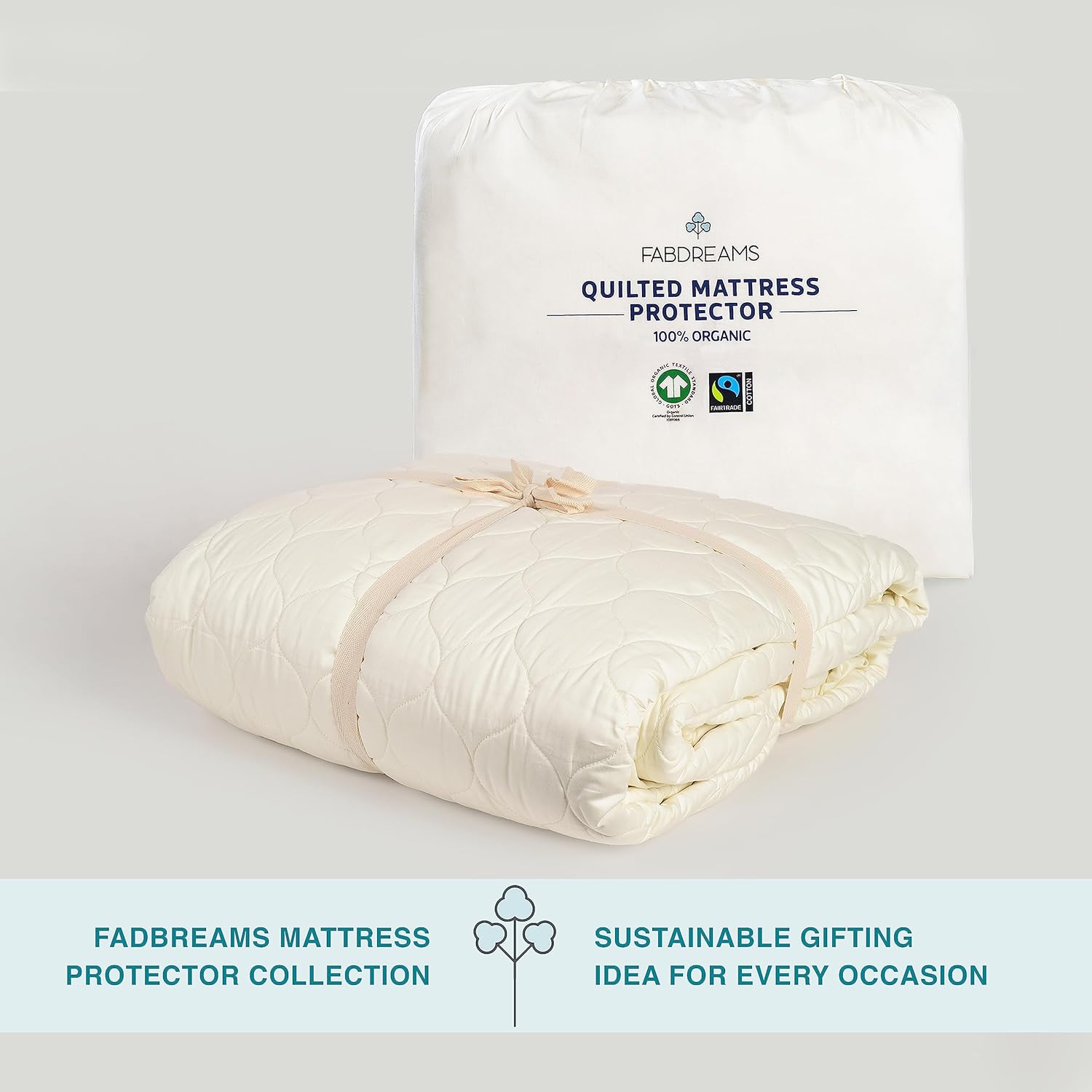 - SUSTAINABLE GIFTING WITH RECYCLABLE PACKAGING: Fabdreams Quilted Mattress Protector is an environment friendly gifting choice for all your special occasions – Thanksgiving, Christmas, Birthdays, Weddings, and Anniversaries. In our mission to cut out plastic, this product comes in a reusable, organic cloth bag. Fabdreams Quilted Mattress is GOTS Certified , OEKO- TEX Certified & made from Fair Trade Organic Cotton.