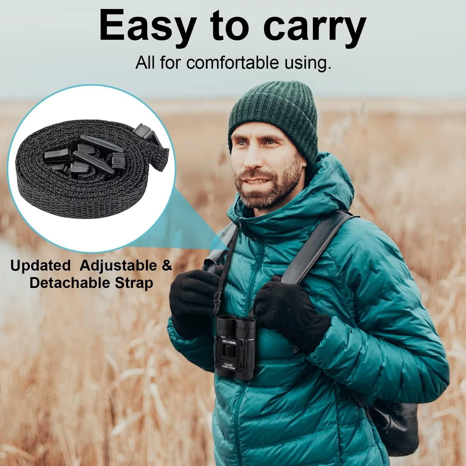 - 【12X binoculars】Equipped with 12x high power magnification, 25mm objective lens and 138yds/1094yds wide field of view. The best structure to help you look farther, see wider, get the sharp vision but without color-changed or blurred.