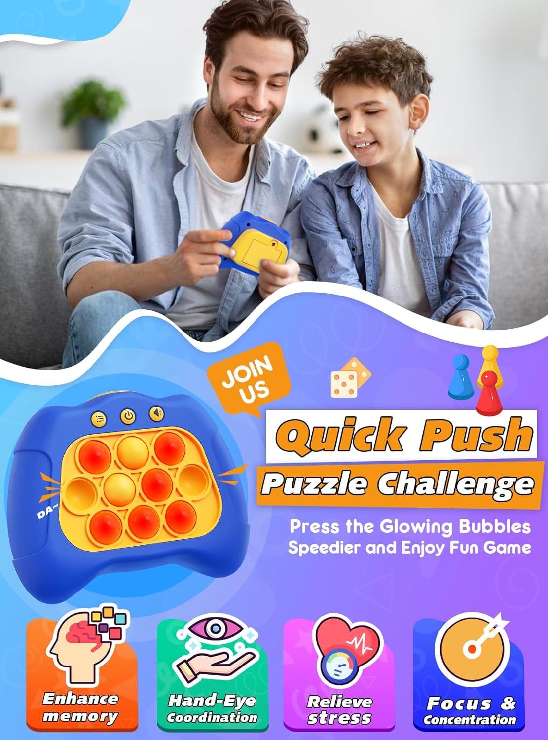 Light Up Bubble Up Fidget Toy, Electronic Quick Push Game Console, Birthday Gifts for 6 7 8 9 10-12 Year Boys and Girls Push Up Stress Toy, Concentration Fast Speed Puzzle Game for Family Party - Blue