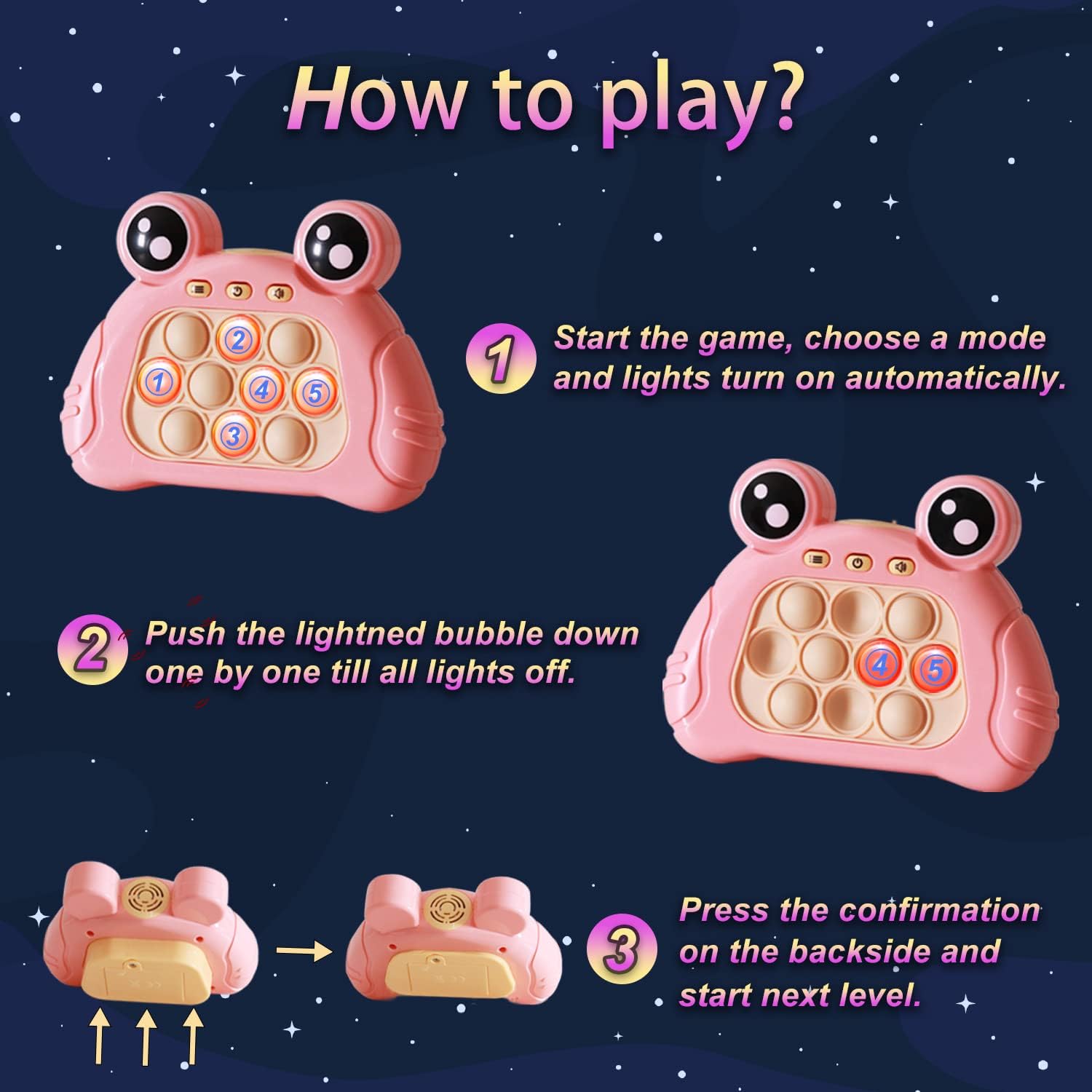 - Multi-Mode Interactive Game: Our handheld game console, the Speed Push Pop, offers four fun game modes - stage mode, memory mode, scoring mode, and multiplayer mode. Each mode provides a unique way to play and enjoy the game, and the console's unique shape design makes it an excellent puzzle game and decompression tool for both children and adults.