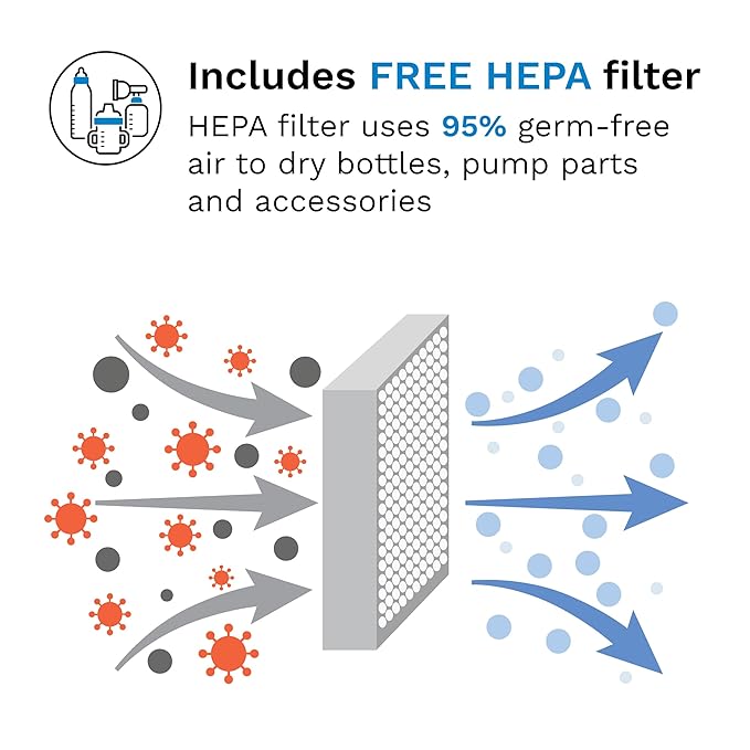 - ELIMINATES 99.9% OF GERMS: Disinfects using natural steam to eliminate 99.9% of harmful bacteria, mold & the yeast that causes thrush in only 10 minutes, then dries automatically with HEPA-filtered, germ-free air; Auto-shuts off when cycle is complete